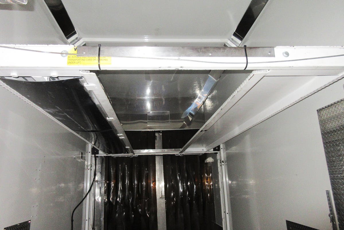 More heavy-duty features include an extended hitch tongue and an inboard air compressor that feeds three different air line systems throughout the rig. Extensive interior and exterior quartz lighting fill the stacker walls as well.