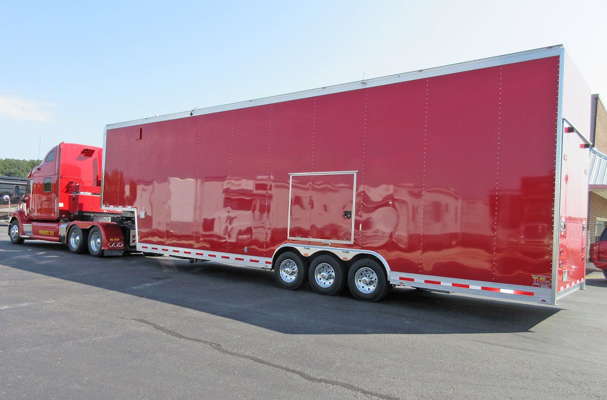 This month’s race transporter is a sharp red combination ready to haul your team from coast to coast.
