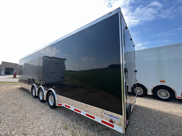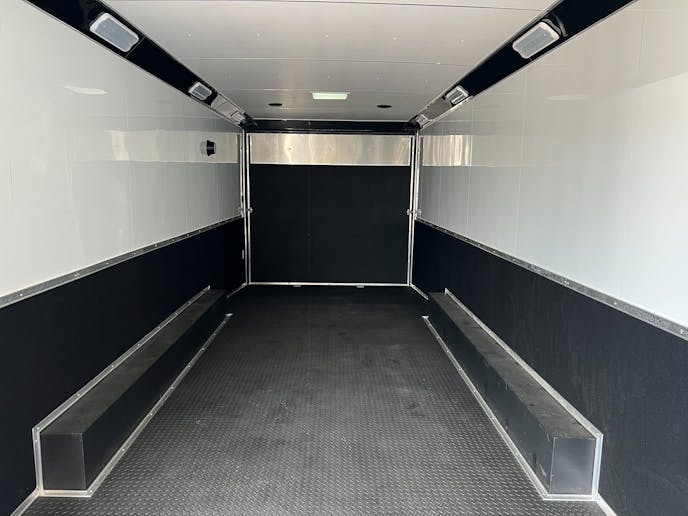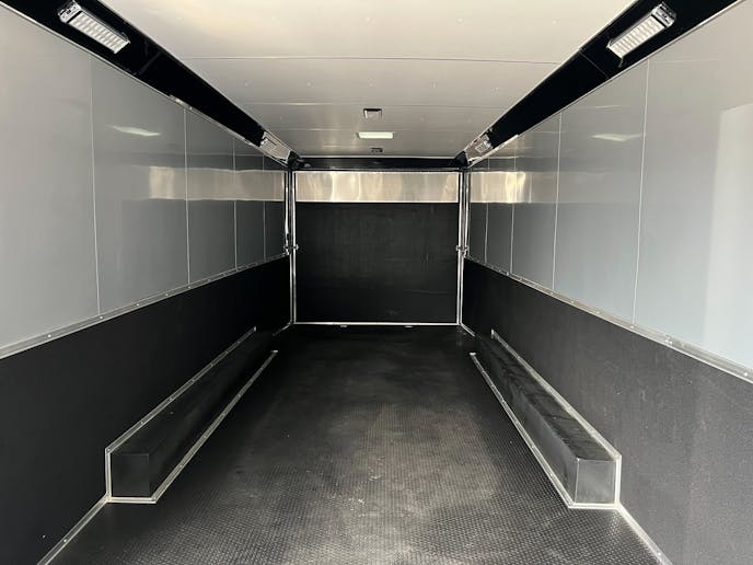 Measuring 32 feet in length and 8.5 feet in width, this trailer is built to accommodate your race car and gear with ease. The striking black .040-inch wall exterior sheet metal not only looks sleek but also adds durability to the structure. With an extra 12 inches of interior height, you’ll have ample space to move around and work comfortably inside the trailer.