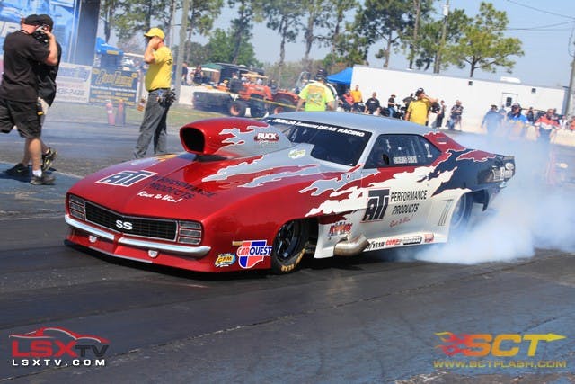 Over the weekend, Rini and company debuted the new Camaro as expected at the NMCA season opener at the Bradenton Motorsports Park down in Florida, and to say that the move to a new race car paid dividends would be an understatement. Fridays testing netted a 6.18 best – just three hundredths off his own national standard in the class – then proceeded to blow the doors off that number and his fellow competitors in the first qualifying session with a 6.037-second, 234 mile per hour blast to take the top spot with room to spare.