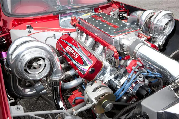 The car is a truly original ’63, featuring a chromoly double frame rail chassis built by l.owdown Hot Rods, with a Mike Moran-built 427 cubic inch small block Chevy with a pair of 88mm Garrett turbochargers, producing some 2,600 horsepower and 1,700 ft/lbs of torque. Other attributes include an MRE sheet metal intake with billet runners, Dart “Little Chief” cylinder heads, a Dart billet block, a Jesel distributor mag 44, Big Stuff 3 SEFI and traction control, a Racepak UDX digital dash and V300 computer, a nine-inch AFT triple-disc clutch, titanium bellhousing, Lenco CS2 four-speed transmission, Strange axles and disc brakes, and a lot more.