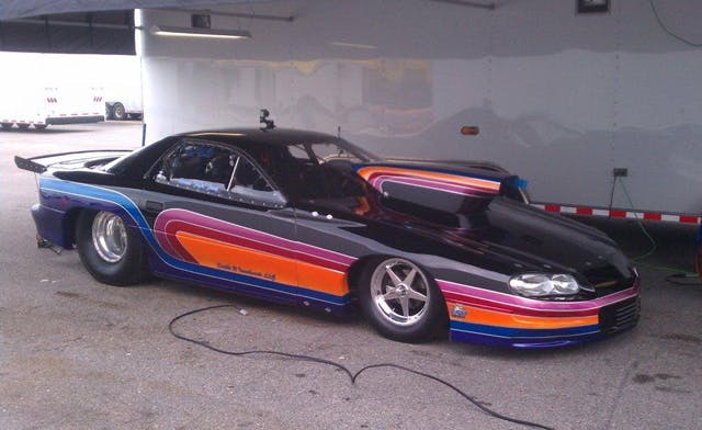 Meet Ronnie “Fofo” Foret and his newest project, a Don Ness-built ’02 Camaro. Plans are to campaign the car in the consistently fast class of Top Sportsman. To date, Ronnie and crew have run as quick as 7.01 at 197 MPH and a best short time of 1.06. Powered by a 638 cid BBC built by Scotty’s Race Engines, the engine features a Dart block, Brodix EPD cylinder heads, Callies crank, GRP 5500 ProMod Rods, Diamond pistons, and Moroso dry sump oiling system, topped off with dual carburetors and two stages of nitrous by Steve Johnson (one fogger and one Punisher).