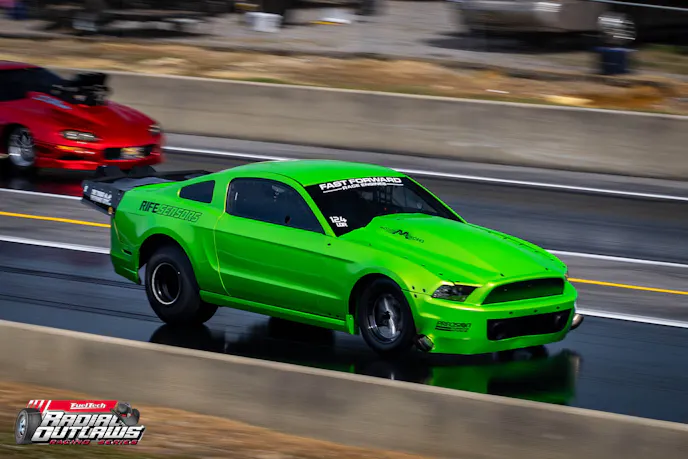 The spotlight was on Radial vs. The World at Bama Outlaws, thanks to Ken Quartuccio Jr. During qualifying, Quartuccio dropped the hammer on the radial-tire record once again in his ProCharged Camaro, lighting the boards with a 3.436. During eliminations, he continued his dominance with a string of 3.40-second runs, including a 3.458 in the semifinal round.