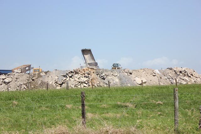 Recently, a commercial recycling company, HPP Materials Inc., began concrete-crushing operations on a tract of land east of Royal Purple Raceway. A large concrete debris pile has been growing daily, with the prevailing winds in the area blowing dust and debris from the site onto Royal Purple Raceway property.