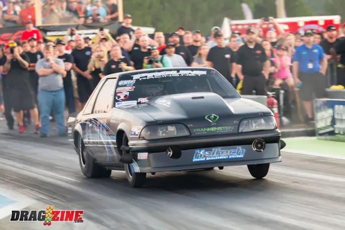 The combination of Pro Line Racing big-block Chevy and Frankenstein Engine Dynamics cylinder heads powered Lamana’s Mustang at the Sweet 16. Precision Turbo provided Lamana with a pair of their 94mm Gen 2 turbos to add plenty of boost and power to the Pro Line engine. The engine is controlled and tuned via a Haltech engine management system. M&M Transmission supplied the two-speed TH400, while a Protorque EV1 torque converter transfers power to all the Santhuff shocks and RaceCraft suspension parts.