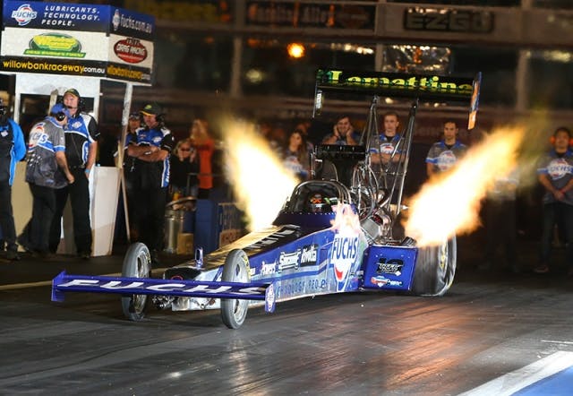 In the midst of the media frenzy surrounding the most prestigious drag race in Australia, the 47th annual Fuchs Winternationals held at the Willowbank Raceway, it was reported that the Australian National Drag Racing Association would be following the NHRA’s move to a 1,000-foot race distance for Top Fuel in 2015, bringing to an end a six-year holdout with full quarter-mile racing. That news was met with much criticism on both sides of the pond by those championing the cause for nitro racing over the traditional 1,320-foot distance. But now, with the move seemingly concrete based on various reports, comes word from ANDRA officials, most notably series CEO Malcolm Bulley, that no such decision has ever been made.