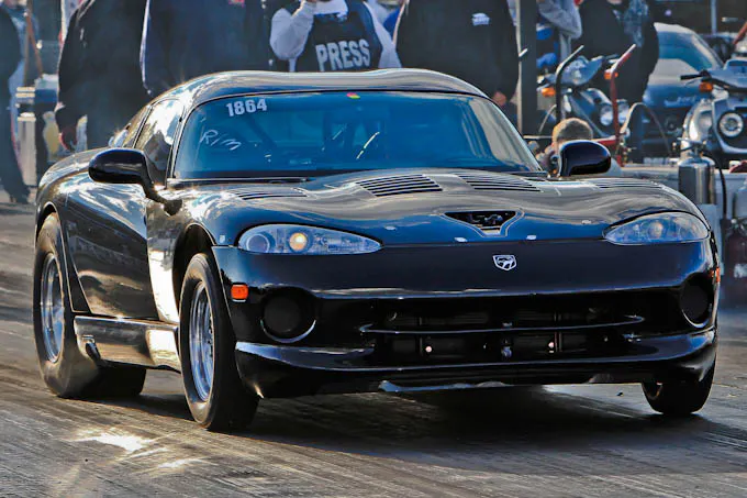 Flocks of Drag Radial-equipped race cars have broken into the six-second zone over the last handful of years years, and while they are all impressive for pushing the limitations of a small tire on 3,000-plus horsepower, there are a few that stand out from the crowd. How about a street driven, six-second drag radial car that has eclipsed the limits that many thought would be impossible on a factory suspension setup? Well, Sal Patel’s Outlaw Drag Radial Dodge Viper is exactly that.