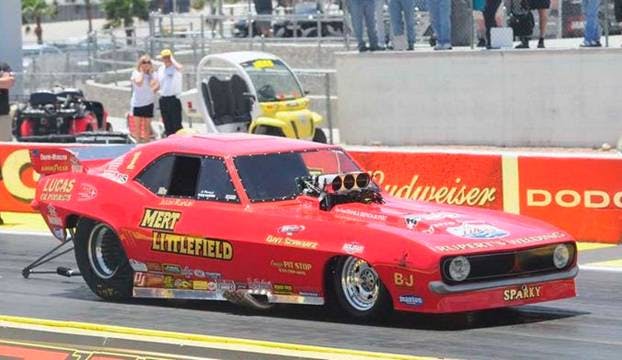 Among the field of AMSOIL Prostalgia floppers will be one of the most famous car and driver combinations of all-time, as Dale Pulde returns to the wheel of his iconic “War Eagle” 1977 Pontiac Trans Am. Joining him will be second-generation nitro pilot Steve Densham, the son of NHRA Funny Car driver Gary Densham, driving his father’s “Teacher’s Pet” Camaro, and Jason Rupert in the “Mert Littlefield” tribute Camaro that recently reset the DRO Series speed record at 253.14 mph — nearly a full mile per hour faster than the current Nitro Jam speed record.