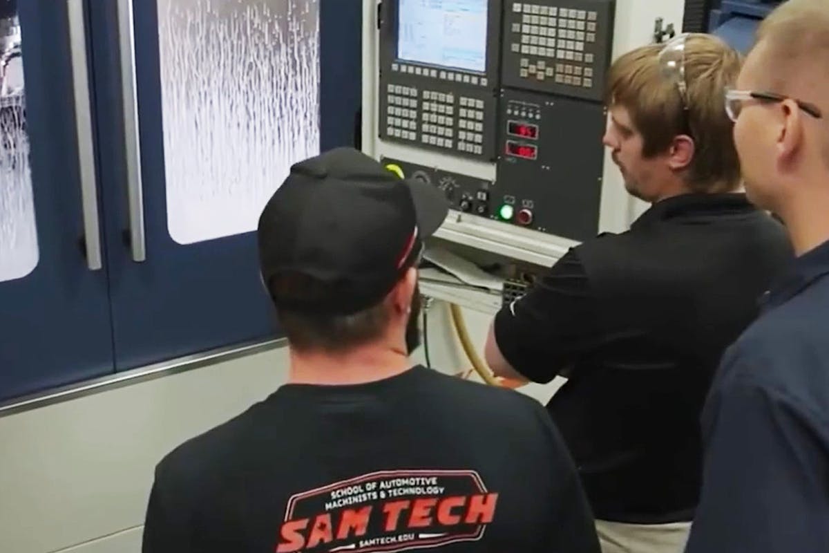 Computer Numerically Controlled Machining Centers (CNC) are now the most widely implemented form of advanced machine shop practices and manufacturing today. The School of Automotive Machinists & Technology (SAM Tech) has taken the lead with its CNC machining curriculum that qualifies graduates to be capable of understanding and performing CNC programming and machining operations.