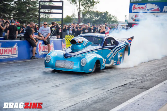 Driving his popular Corvette packed with 872 nitrous oxide-injected cubic-inches for power, Schroeder clocked runs of 6.57 (his best run of the week, at the opener in Cordova), 6.60 (Gateway Motorsports Park), 7.04 (Byron Dragway), 6.75 (Great Lakes Dragaway, and 7.08 (Cordova) to complete his winning timesheet.