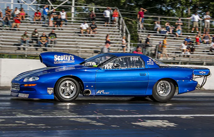 With the 4.19, he becomes only the second competitor in the class running nitrous oxide into the four-teen range, with Jamie Hancock the only other radial-equipped nitrous-powered competitor ahead of him. He’s been chipping away at the Camaro’s performance for several years now, swapping to the radial tire a few years ago and having a good measure of success with the change.