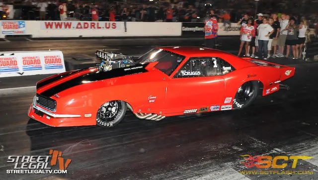 In most recent years Scruggs called upon Garrett Race Cars who build some truly bad hot rods for action in the ADRL and across the country on the outlaw circuits. Starting with a 2006 Dodge Stratus, Jason and his team barraged the competition on their way to back to back championships. One of which was won with the Stratus. Once the Stratus was retired a new Garrett built Camaro. The Camaro started off life in a hard way at Virginia Motorsports Park. An oil line came loose at the hit of the throttle and sent the Camaro slipping and sliding head on into the wall. A testament to how hard this team works is the fact that they had the old Stratus towed from Mississippi to Virginia and prepared it for action by the final round of qualifying.