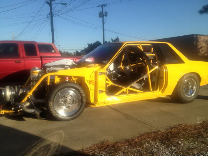 Sean Lyon and his yellow Fox coupe were one of the most feared opponents in NMRA drag radial just a couple years ago. However, the class’ performance was surpassing the 7.50-second threshold, which meant many guys either had to redo their cars’ chassis and cage, start fresh with a new build, or reconfigure their car into a slower class. We know that last choice isn’t anything a real racer would choose, so they were left with either building a new car, or having their existing car redone to 25.3 specs.