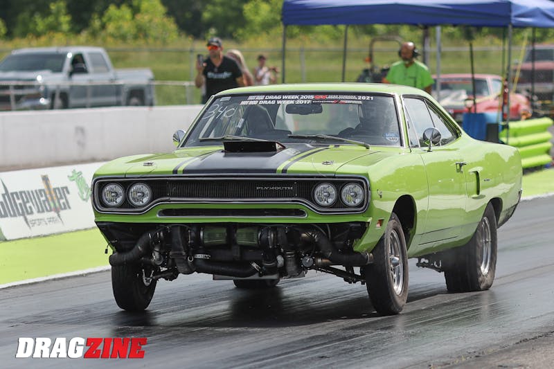 One of those deer decided it wanted to check out the racing action when Chenoweth was making a pass against three-time NHRA Top Fuel champ Larry Dixon. Chenoweth’s Roadrunner is a pretty nasty ride thanks to its Holley EFI-controlled twin-turbo Gen II HEMI. The Plymouth recorded a best pass of 9.10 at 150 mph, so it’s making a whole lot of steam each pass at the top end.