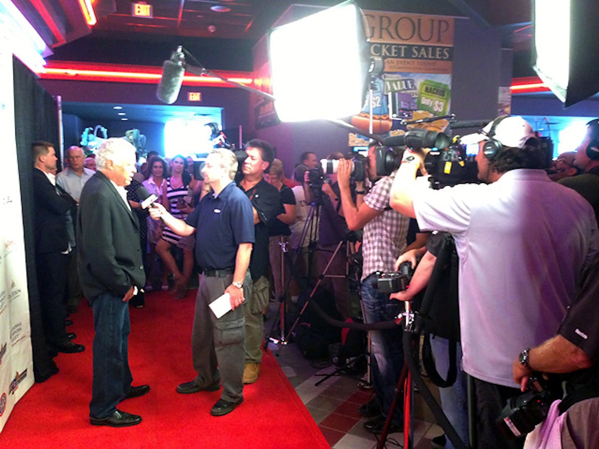 Filmmakers at the premiere included “Snake & Mongoo$e” Producer and President of Entertainment Universe Robin Broidy, and her husband, Executive Producer Elliott Broidy. Prudhomme and McEwen served as executive producers and on-set consultants, ensuring the film was as true-to-life as possible. Parked outside the Regal were the iconic yellow and red haulers and the ‘Cuda and Duster Funny Cars Prudhomme and McEwen drove, which will be crossing the auction block at Barrett-Jackson Scottsdale in January 2014.