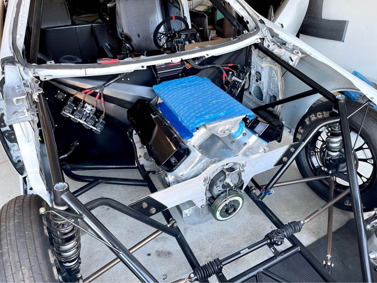 The engine is an M&M Competition Engines 400-inch small-block Chevy with a Forced Inductions 114mm turbo, built upon a CN billet block, Revolution billet heads, a Bryant billet crank, and R&R rods. Wilbur has selected Billet Atomizer 800 lb/hr injectors to deliver the fuel, FuelTech FTSpark8 CDI coils to light the combustion process, and an FT600 ECU and an FT switch panel control it all.