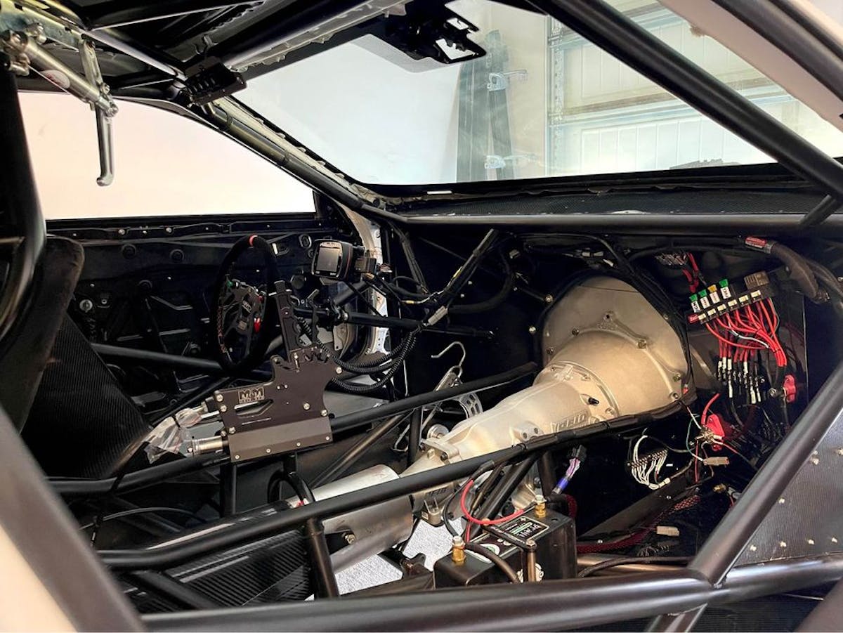 “I bought the entire car… it had been clipped in the front; we got a new OEM bumper for it, and sold the engine and transmission out of it to turn it into a drag car. I decided on this particular car because there isn’t another out there like it. It’s the only one. We tore it apart and built it up with a 25.1 chassis; the interior is all carbon-fiber, it’s all factory body panels. It still has the factory VIN on the doors and front window. We planned to do an all-billet small-block setup to run Limited Drag Radial, but it can run small-tire radial races, 28-inch tire shootouts, and so on,” Wilbur says.