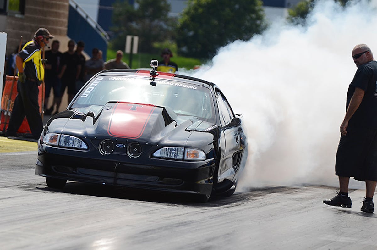 Dillard’s wild Wednesday started with a 6.11-second, 229-mph run at Bradenton (Fla.) Motorsports Park that blew out the driver’s-side window in client Willard Kinzer’s Pro Radial Mustang but nonetheless unofficially trumped Roger Holders’ quarter-mile world-record.