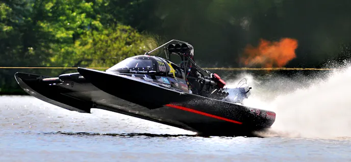 The Top Fuel Hydroplanes, which make Top Fuel Motorcycles seem safe by comparison, sport nitro-burning, supercharged Hemi’s with multi-disc clutches just like their land-locked counterparts, with twin propellers underneath providing the unfathomable blasts down the liquid race course.