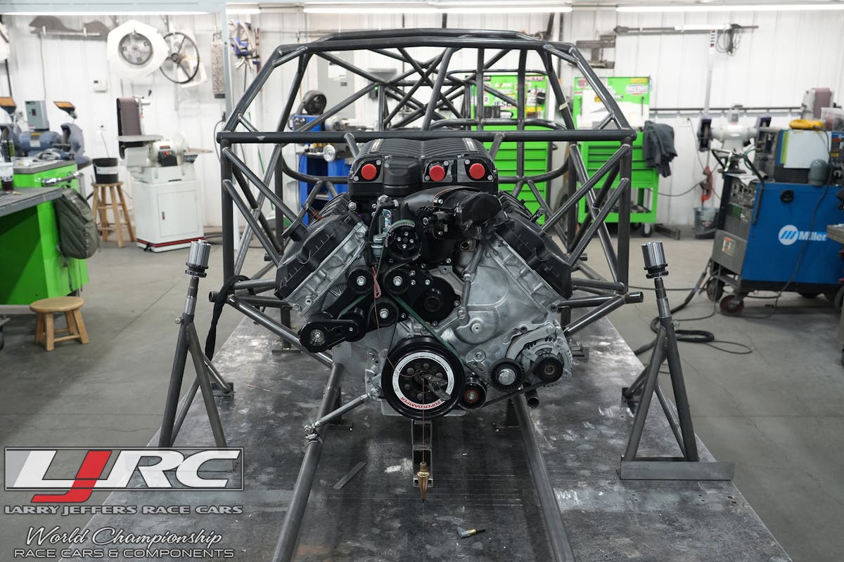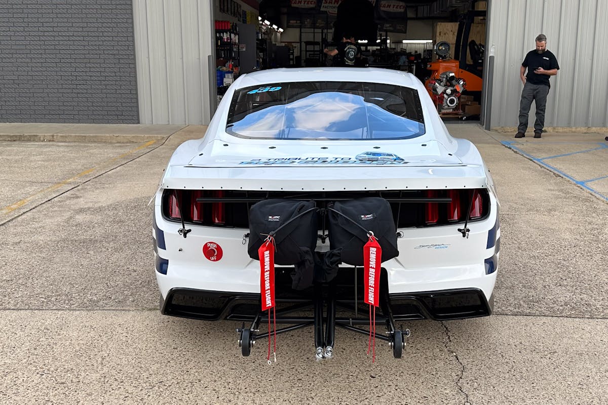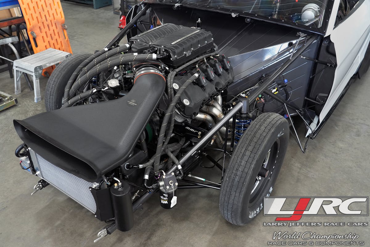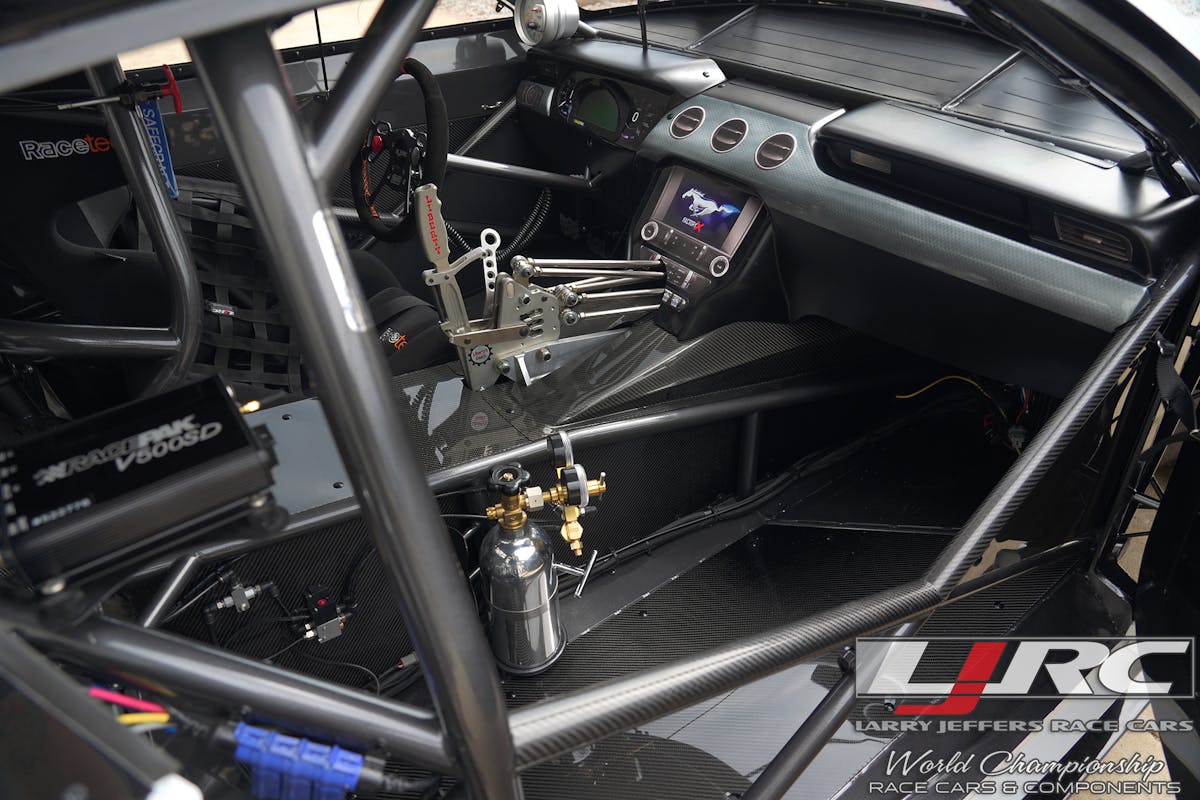 The Factory X Mustang’s — this one joining Chris Holbrook’s car as the only Ford’s currently competing in the category — utilize a 327 cubic inch Coyote engine. These are production-style, 90-degree V-8’s with aluminum engine blocks and cylinder heads, featuring dual overhead camshafts and four valves per cylinder, with a bore and stroke combination of 3.7-inches and 3.8-inches, respectively. They are topped with 3.0L Whipple superchargers, and this one is backed by a Liberty five-speed manual transmission with a clutch.