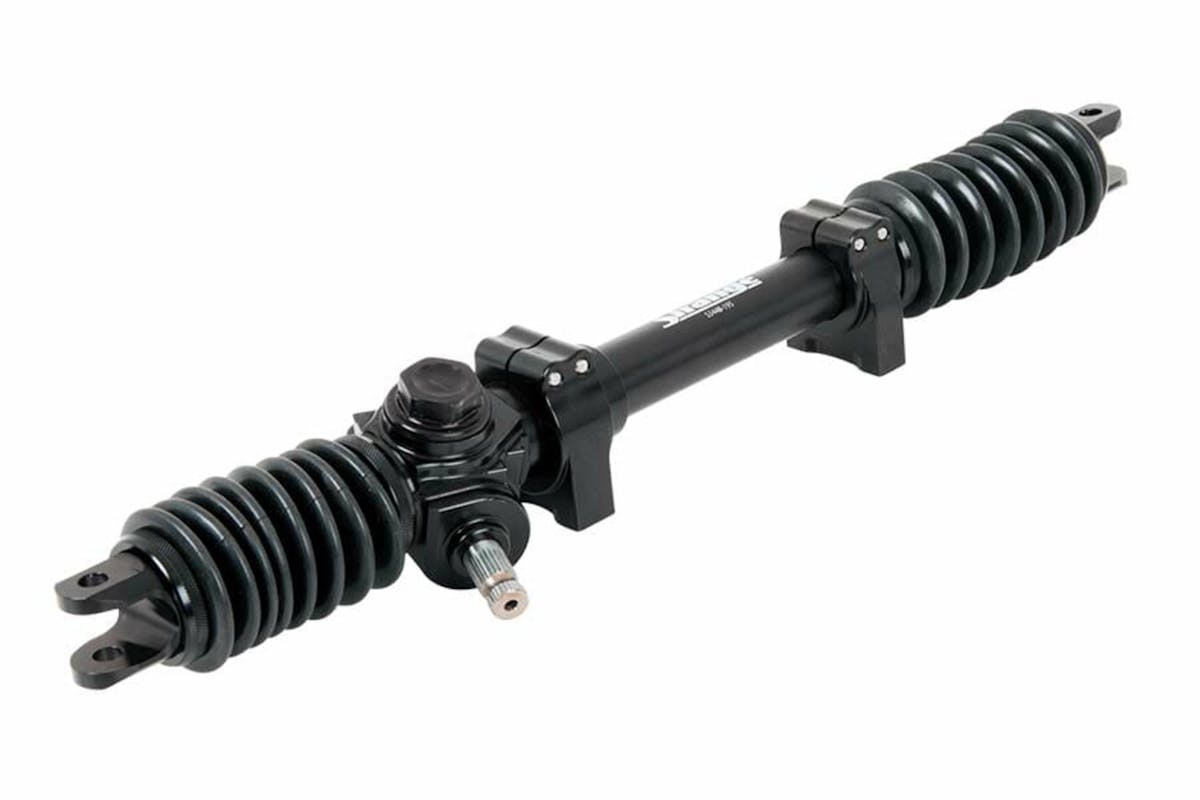 The two big things you want from a steering rack that’s used in a drag car is a smooth turning radius from wheel lock to wheel lock, and as little backlash as possible. A car that “wanders” down the track is going to require more steering input, and that’s going to cost you elapsed time. The Strange Engineering Door Car Drag Racing Steering Rack has been designed to fight steering issues that drag racers face.