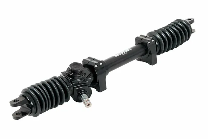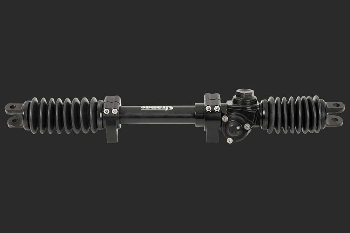 The two big things you want from a steering rack that’s used in a drag car is a smooth turning radius from wheel lock to wheel lock, and as little backlash as possible. A car that “wanders” down the track is going to require more steering input, and that’s going to cost you elapsed time. The Strange Engineering Door Car Drag Racing Steering Rack has been designed to fight steering issues that drag racers face.