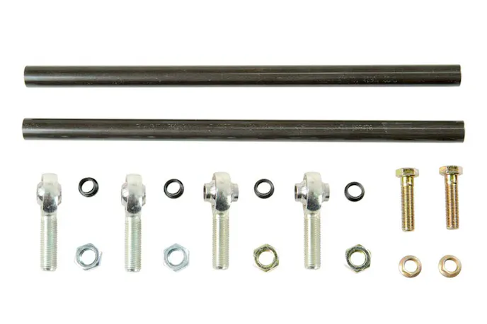 The steering rack has 20 and 40-degree rack rotation position options — this gives users more freedom to set up the steering shaft for their vehicle. Strange built this rack to have a 22-to-1 ratio and 4.25 inches of total rack travel, so it’s ultra-smooth and provides a generous turning radius. Since this rack is for door cars, Strange wanted to ensure it would be strong. The body of the rack is made of 6061-T6511 billet aluminum, and the gears are made of hardened 4140 alloy steel. Strange offers two different versions of the Door Car Drag Racing Steering Rack (S3448 and S3448-195), along with a tie rod kit (S3449) for these steering racks.