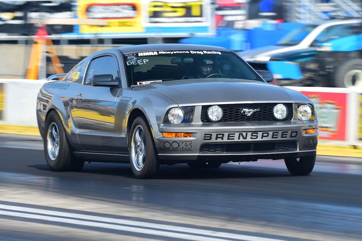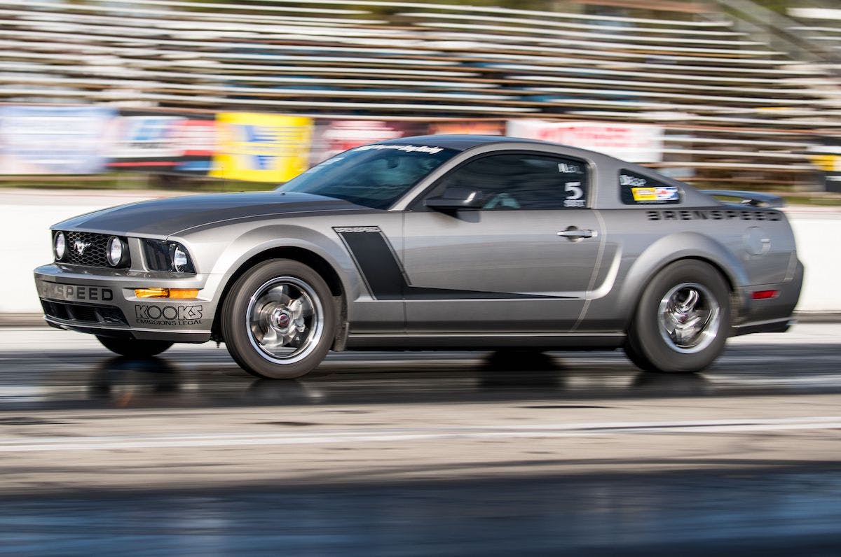 That first year, he drove a 2008 Mustang which was owned by Brenspeed and ran mid-elevens. By the following year, he was driving his own 2008 Mustang, which has been steadily stepped up through the years and now runs high 10s with a 4.6 Three-Valve engine built by Brenspeed, topped with a ROUSH Performance supercharger and backed by a TCI-massaged 5R55 transmission.
