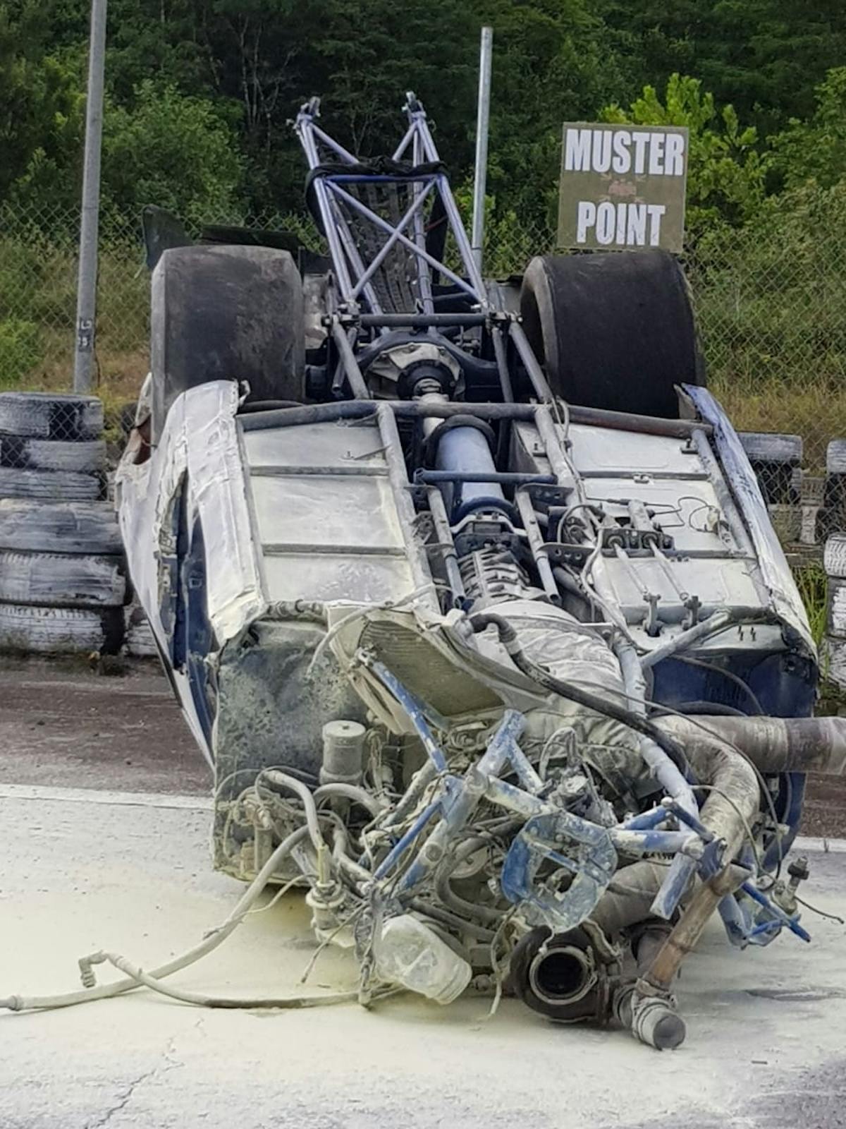 The fatal accident came just one day after Ryan Garcia, driving his SKF Lancer, one of the island’s most prolific drag cars, was destroyed in a violent accident that occurred in very much the same scenario; Garcia lost control of the Lancer at the conclusion of an 8.03-second pass as the car took an abrupt turn into a tire barrier and rolled end over end. Garcia was uninjured.