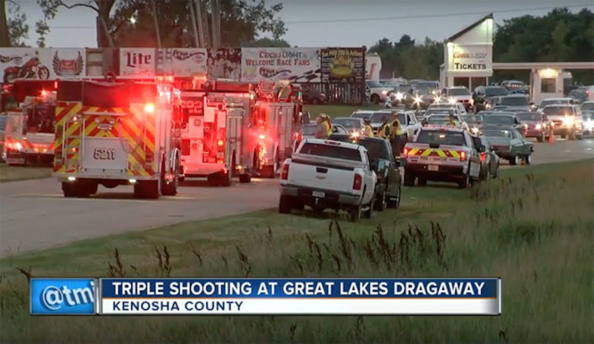 The suspect in a triple homicide during what’s touted as a family-friendly racing event at the Great Lakes Dragaway in Union Grove, Wisconsin remains at-large as Kenosha County Sheriff’s Department investigators work to determine a motive for Sunday’s shooting.