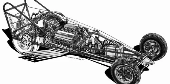The Allard dragster was used extensively between 1961 and 1966 to promote drag racing on the British isles. Allard even went so far as to invite American heavyweights like Mickey Thompson to join him for drag racing exhibition matches. Using a Chrysler-sourced 354 cubic-inch HEMI V8 topped by a GMC 6-71 supercharger, Allard introduced England to the rip-roaring sounds of best American drag racing had to offer.