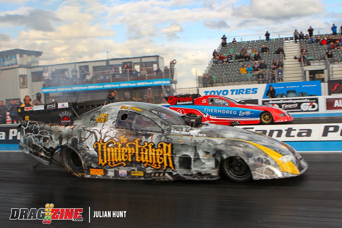 Starting Thursday with an open test the meeting spans five days concluding on Sunday. For many racers the test day is their first opportunity to run after their cars, or bikes, have been parked over the winter, so the opportunity to test prior to the event proper is very welcome. With the weather not always on our side, there are inevitable delays and this was the case for 2019. Santa Pod’s devoted track crew never give up which resulted in some thrilling evening sunset sessions and 9:00 pm finishes.