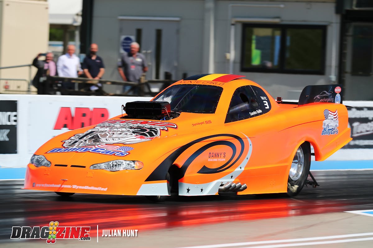 Top Methanol saw the welcome return of Malta’s Manty Bugeja and his dragster, his first time competing against dragsters and Funny Cars in the same class. Manty made his way to the final where he met Sandro Bellio who had defeated Jonny Lagg’s A/Fueler. The win went to Sandro and his Funny Car, which is given a slight advantage over the dragster, 5.53/253mph to Manty’s 5.45/268mph, the winning margin of 0.2428.