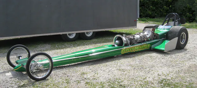 Tim Arfons, the son of three-time world land speed record holder and one of the most outside the box thinkers in the history of motorsports, Art Arfons, recently unveiled a modern recreation of the iconic Green Monster No. 19 front engine turbine-powered dragster and gave fans at the Quaker City Motorsports Park in Salem, Ohio their first look at the machine on Sunday in its first public appearance during the track’s annual Nostalgia Classic. Arfons’ machine is a modern adaptation of the Green Monster that he and his father had campaigned for a short period back in the early 1970’s in Top Fuel with limited success. The original car used a General Motors T-58 turbine engine that made somewhere in the neighborhood of 1,300 horsepower and tipped the scales at just 250 pounds. You can imagine the power-to-weight ratio!