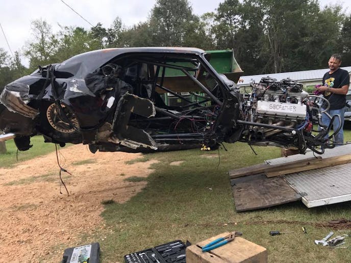 “I told my wife I was done racing after this crash. I’ve had a few accidents before, racing on the street, but my kids wanted me to keep going. We all agreed the street hadn’t been good to me and it was time to switch to track-only racing. I was able to save the motor and some electronics, but everything else was trashed and now I was out over $60,000 with this car being wrecked. The risk just isn’t worth the reward for me to race on the street anymore,” Nicholson says.
