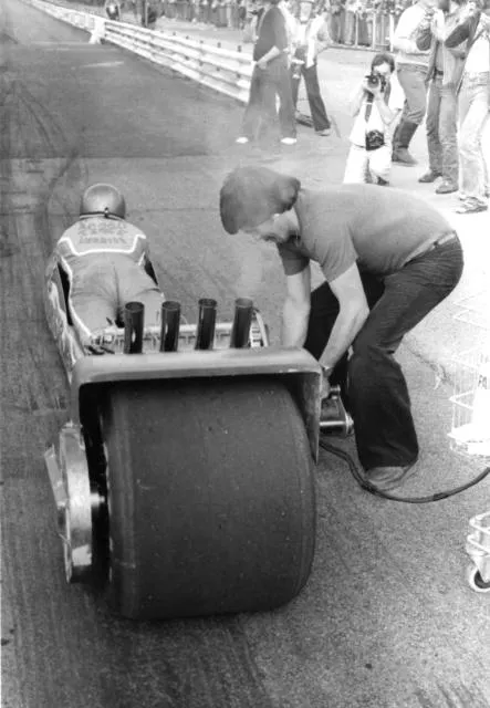 The frame was, obviously, a completely one-off piece that was built monocoque-style – with a main center section made of alloy and put together with Araldite adhesive and Monel rivets. A well-designed body with ground effects incorporated helped keep it stable and hooked up at close to 200 MPH. Despite it’s unique and borderline crazy method of riding, Angus claimed it was actually very easy to navigate down the track.