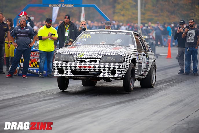 Since his move to the new engine, Sobrino has struggled to find his groove with the new mill and hasn’t been able to lay down the same elapsed times he did with the first generation engine. The Coyote Stock class is a sealed engine eliminator, so Sobrino can’t open the engine up to see what’s going on to improve the car’s performance.