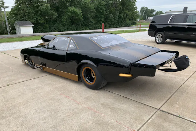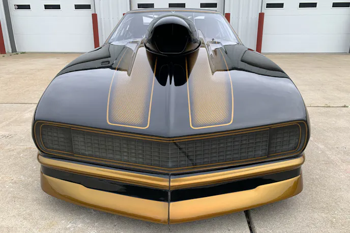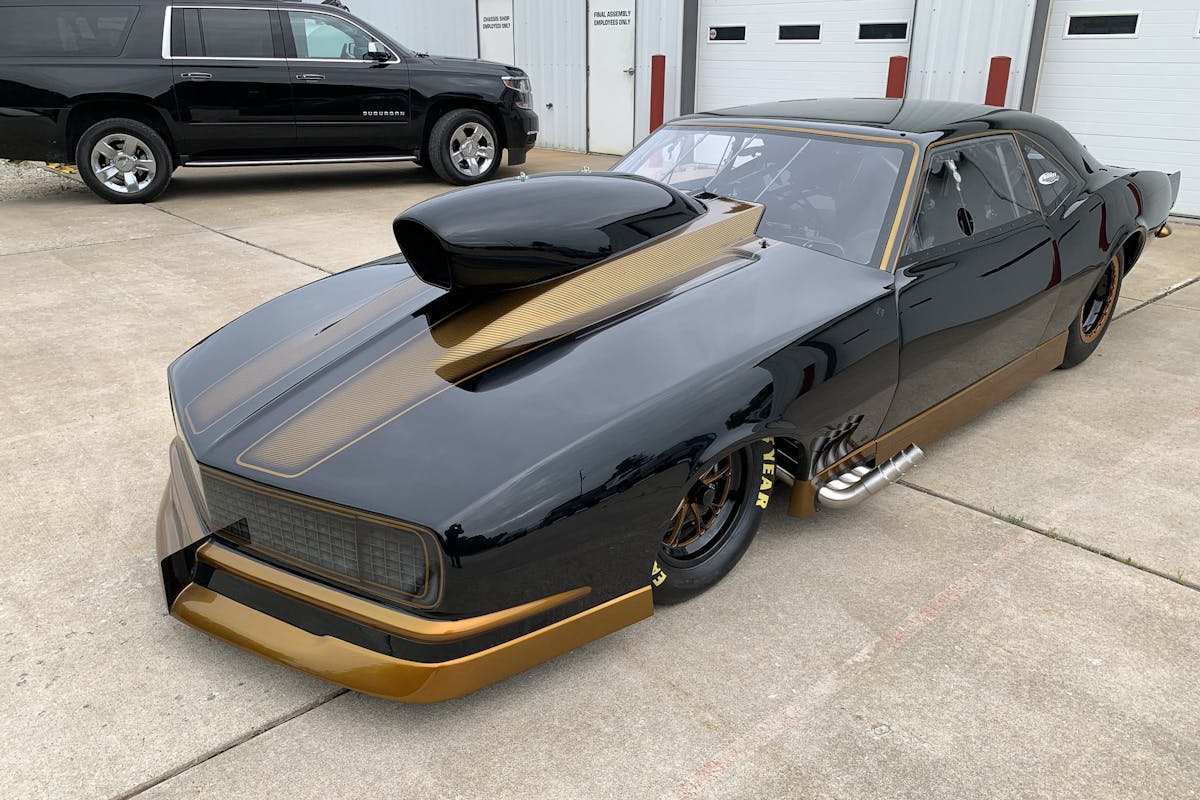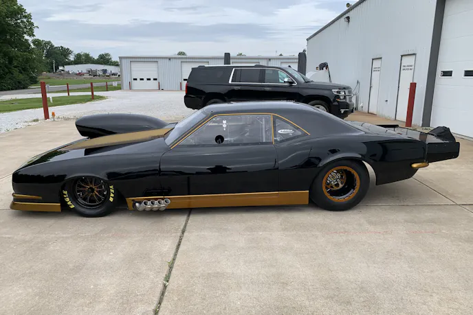 ‘Black Gold” features a 1968 Camaro steel roof and quarters, paired with a carbon-fiber Tim McAmis body atop a Pro Modified-style chassis. Bickel utilized Smith Racecraft bolt-in A-arm front suspension components to keep the car class-legal for a variety of venues, and virtually no expense was spared anywhere in its construction to produce the quickest and fastest small-block nitrous car on the planet.