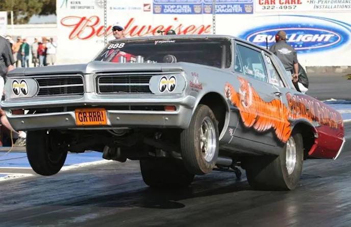 The guys over at Speed Hunters turned us onto this wild ’64 Lemans altered wheelbase nostalgic drag car. It’s powered by a big block Pontiac race engine with Hilborn fuel injection. The car’s owner, Glenn Gibbons races the car in the A/FX nostalgic class. Usually, the car will run in the low 10-second zone at 131 miles an hour.