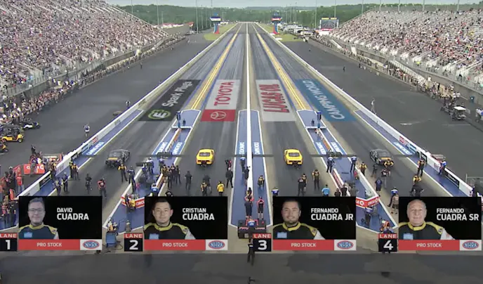 The four-wide event marked the Pro Stock debut of David Cuadra, the twin brother to Christian, a now four-year veteran of the category, making this, the second of just two four-wide races this season, the perfect opportunity for the history-making quadrant.