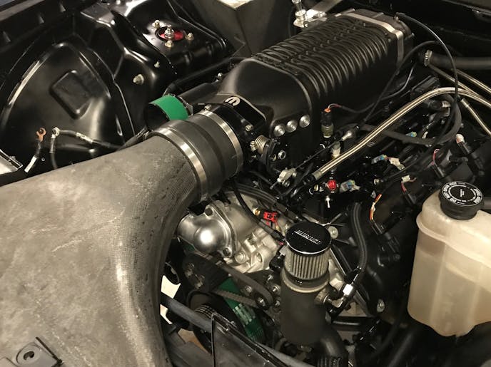 Turk acquired the new engine and block from Mopar this summer, and engine builder Tony Bischoff and his crew at BES Racing Engines got to work assembling the record-breaking powerplant, which measures 354 cubic-inches and is topped with a 2.9-liter Whipple supercharger. The power is backed with a TH400 transmission heavily massaged and tweaked by Jason Coan and company at Coan Racing, who Turk says have played a vital role in his success.