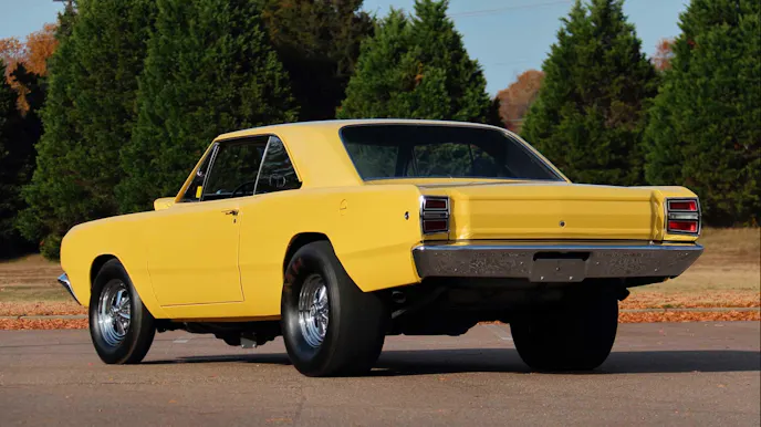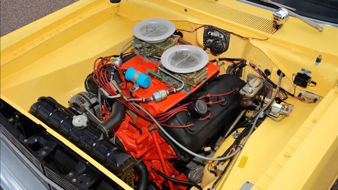 Options were limited solely to transmission choice—either with an A833 four-speed with a Dana 4.88 differential, or a worked A727 automatic backed by a 4.86 8.75-inch differential. As the Mecum ad puts it, each of the 80 cars built were “a poison-tipped spear aimed at the heart of its competitors.”