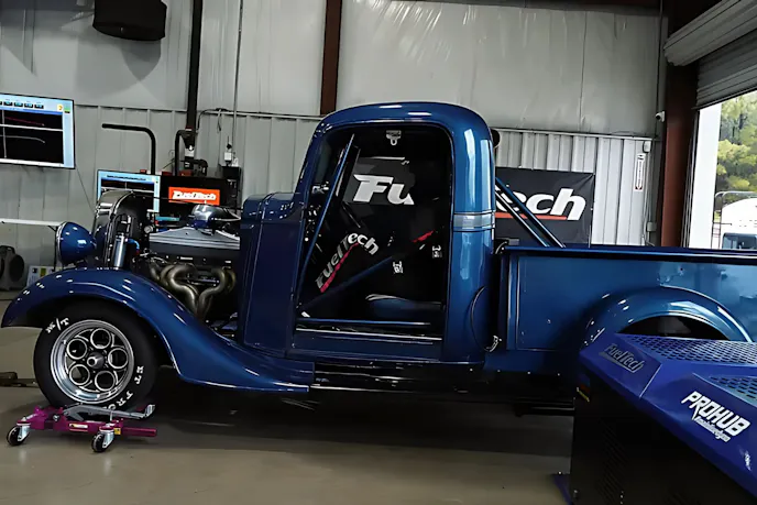 Then came boost control. Starting at just six PSI, the truck was already making solid numbers, but there was plenty more on the table. From there, they focused on wastegate placement and CO2 pressure tuning to smooth out boost response. By the end of the session, the Staff Bros. had their game plan. The FuelTech FT600 ECU was dialed in, the data was solid, and the 1936 Chevy Pickup was finally ready to hit the track—this time, with confidence.