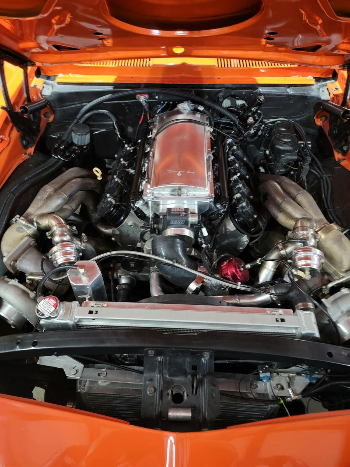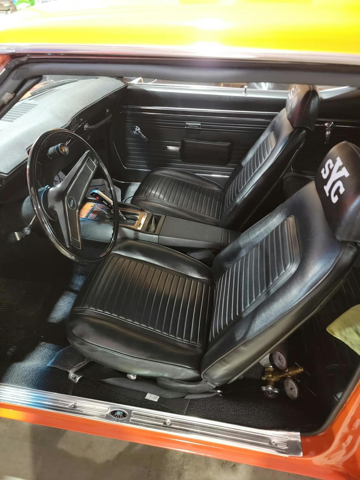 The car, described by Curry as a frame-off, nut-and-bolt restoration during which no stone was left unturned, looks as good inside as the day it rolled off the assembly line in 1969, and you’d never know the potency of the car by sitting in it — factory dash and steering wheel, door panels, headliner, dome lights, and all the seats.The chassis sports double-adjustable Viking coilovers and Caltrac split leaf rear suspension setup, and rides on RC Components 17-inch fronts and 15×10 beadlock rear wheels.