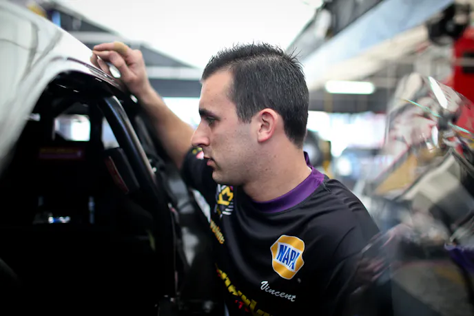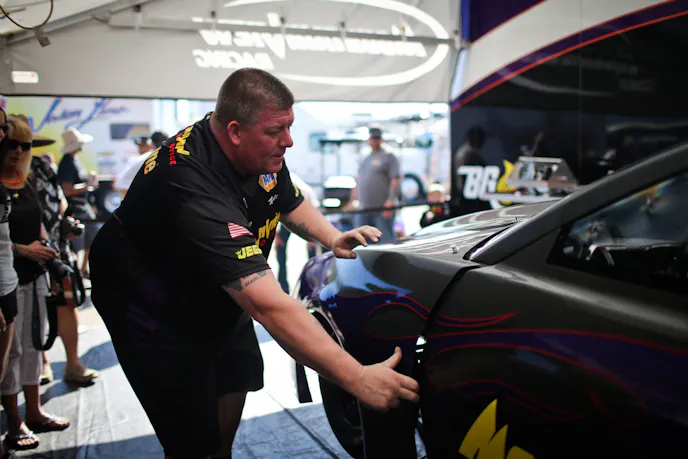 Unlike a Top Fueler (or any internal combustion-powered race car) which is wheel-driven and at the mercy of traction and the laws of physics, rocket cars operated on mere propulsion, and once the engine was lit, it was game-on. These engines combined fuel-grade hydrogen peroxide with platinum or silver, which created a chemical reaction and and incredible degree of thrust — enough to shatter windows within some proximity.