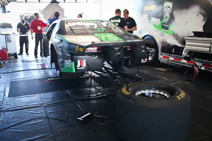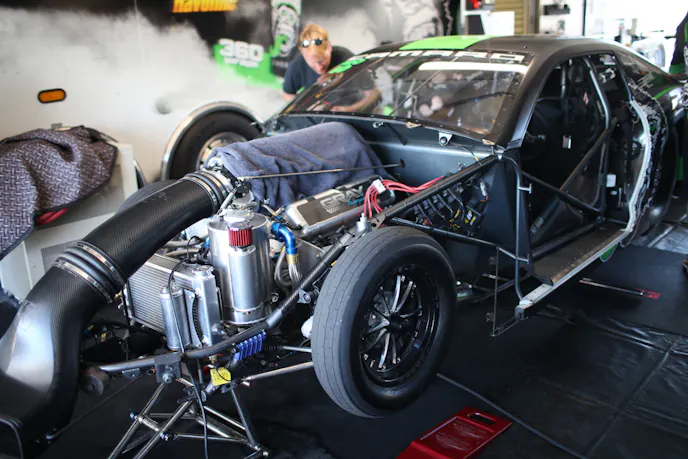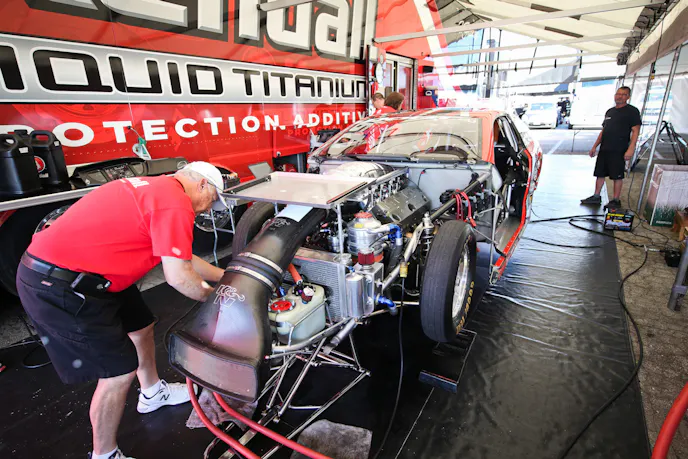 Unlike a Top Fueler (or any internal combustion-powered race car) which is wheel-driven and at the mercy of traction and the laws of physics, rocket cars operated on mere propulsion, and once the engine was lit, it was game-on. These engines combined fuel-grade hydrogen peroxide with platinum or silver, which created a chemical reaction and and incredible degree of thrust — enough to shatter windows within some proximity.