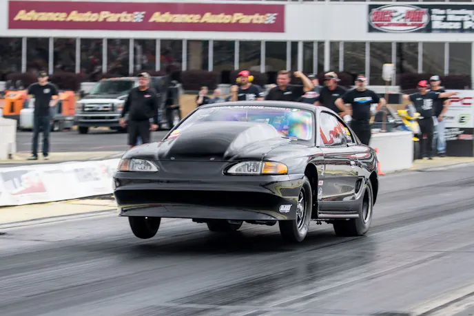 His approach worked as he earned a trip to the Aerospace Components Winner’s Circle, a runner-up, a lead spot in qualifying and ultimately a second place finish in 2018 NMCA Edelbrock Xtreme Street points in the beautiful black Mustang owned by Daryl Reynolds and motivated by a 450 cubic-inch small-block Ford which Knieriem built using a Dart Iron Eagle block and complemented with Edelbrock GV2 heads, a CID intake and a BLP carburetor flowing VP Racing Fuels’ C23 before pairing with a Nitrous Express nitrous system and NLR nitrous controller.