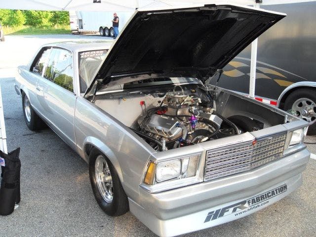 The engine in Geisler’s Malibu a naturally aspirated 582 cubic inch big block Chevy with conventional heads that made 1,056 horsepower at 7500 rpm and 811 ft/lbs of torque at 6000-6500 rpm. This is with a cast intake and a single four barrel carburetor on race gas. The car features an upgraded stock suspension and the tire of choice is a 275/60/R15 Drag Radial. Todd runs a powerglide transmission with a 1.80 first gear ratio and a 6500 stall 8-inch torque converter. The rear gear ratio is a 4.11. The shifter is pulled in the 8000 rpm range. This machine will be running in the new Ultra Street class and is right around the 2900 lb. minimum weight requirement for this combination.