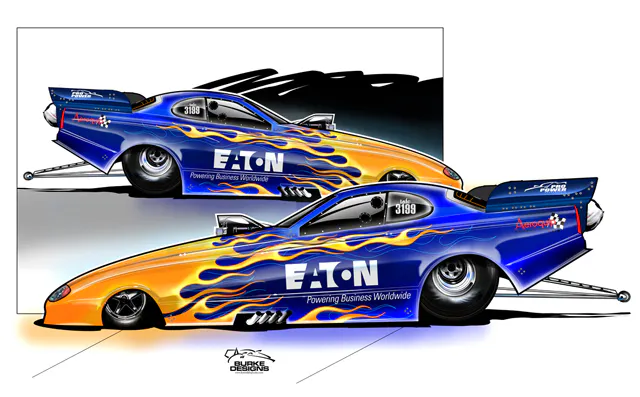 In 2012, former Pro Modified and Pro Extreme competitor Todd Robertson will make his NHRA Top Alcohol Funny Car debut driving a brand new Chevrolet Monte Carlo-bodied flopper, carrying the Eaton Corporation and Aeroquip colors. Robertson’s new mount, with a chassis built by Brad Hadman and paint work applied by Dan Carpenter and 21st Century Collision, will feature a number of Eaton products, including Aeroquip hose and fittings for fuel and brake lines and Synthflex tubing and fittings for fuel management. It will also sport toggle switches from Eaton for the electronic control and data acquisition system.