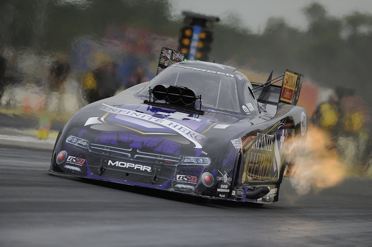 In the second round, Hagan and Beckman squared off in one of the most anticipated drag races in years, and in the quickest side-by-side Funny Car race in history, it was Beckman who got to the stripe first with a 3.903 — a run which officially backed up his 3.901 for a new national record and the 20 points that go along with it. Hagan, for his part, paired a 327.19 mph speed with his losing 3.947-second run to back up his earlier 329 mph number for a new national speed record.
